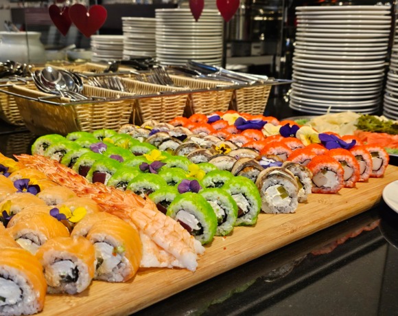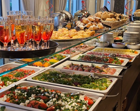 Goście Róży Wiatrów korzystają z doskonałych bufetów - śniadaniowego i kolacyjnego w Baltic Spa, zgodnie z zarezerwowaną ofertą pobytową.